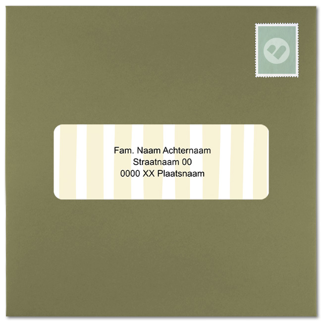 Adressticker met een gestreepte achtergrond in gele kleurtinten. Zet zelf heel eenvoudig in de editor alle adressen op de adresstickers.| Totaalprijs: 0 |