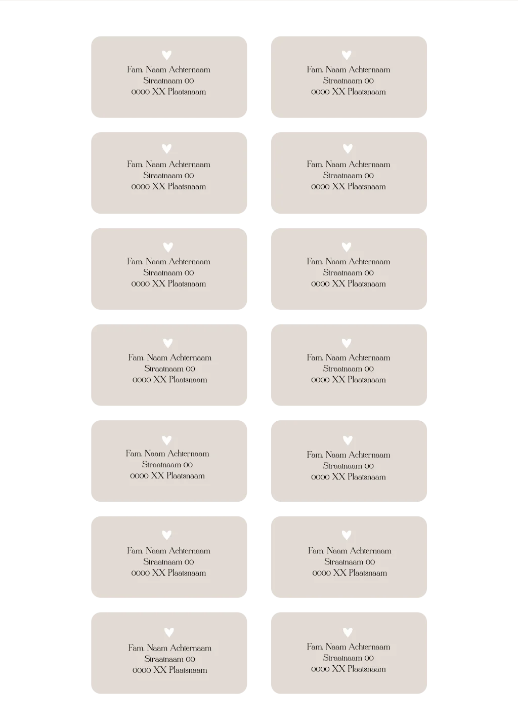 Adressticker voor op de envelop van het geboortekaartje. De adresetiketten hebben een rustig klassiek design met een hartje.| Totaalprijs: 0 |