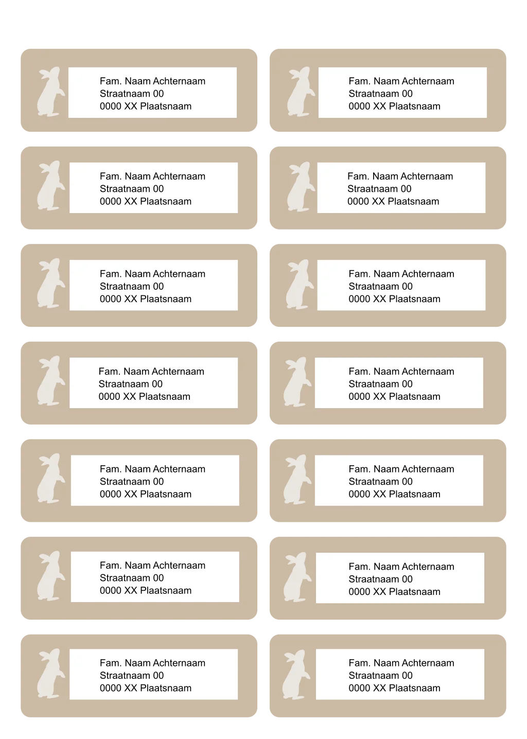 Adressticker met schattig konijntje, erg leuk om te gebruiken op de envelop van een geboortekaartje of de uitnodiging voor het eerste feestje van je kleintje. Zet zelf heel eenvoudig in de editor alle adressen op de adresstickers.| Totaalprijs: 0 |