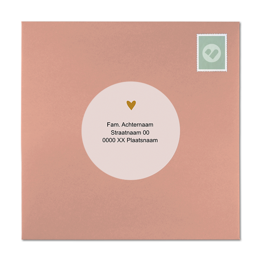 Ronde adressticker met een zachte roze achtergrond en klein hartje. Zet zelf heel eenvoudig in de editor alle adressen op de adresstickers.