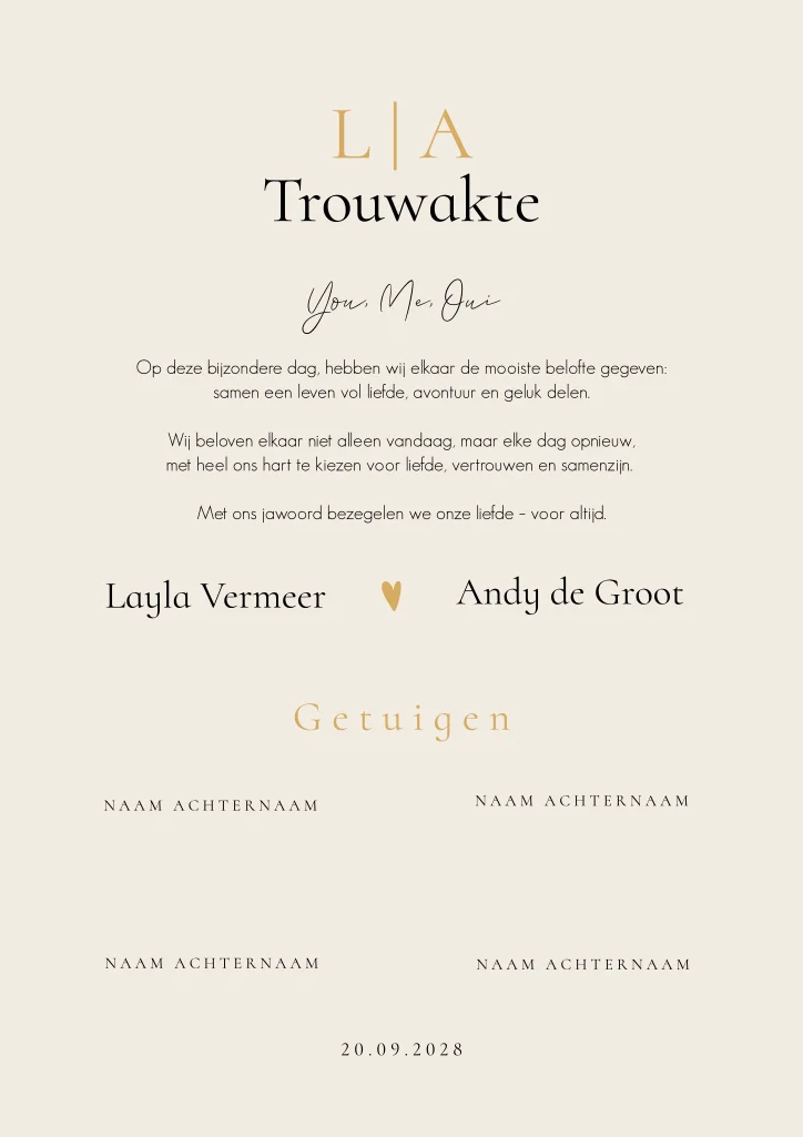 Trouwakte voor een bruiloft met initialen. Deze trouwakte hoort bij de trouwkaarten set geometrisch. Bestel vandaag nog jullie eigen exemplaar.