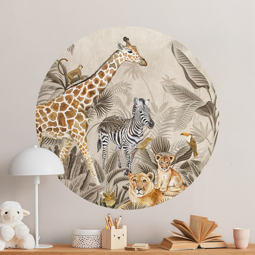 Jungle behangcirkel met giraf, zebra en leeuwen