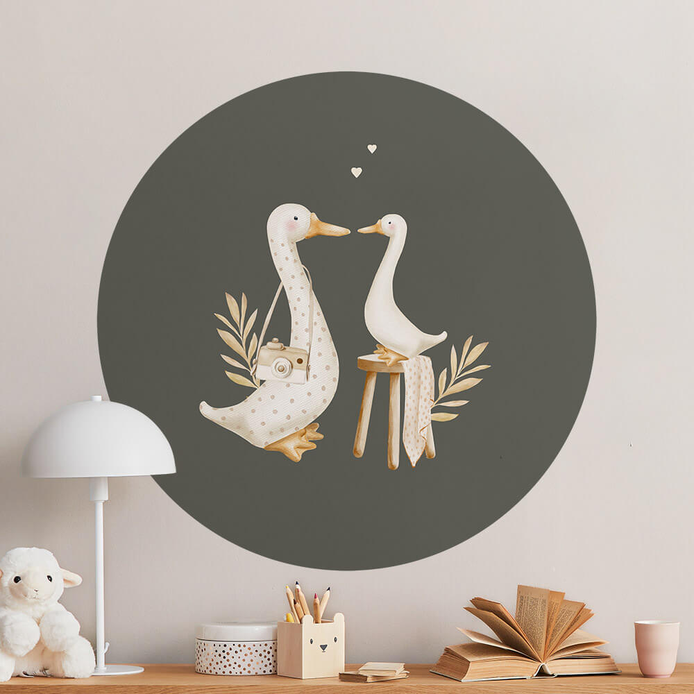 Een superschattige behangcirkel voor een jongenskamer met twee gansjes.
