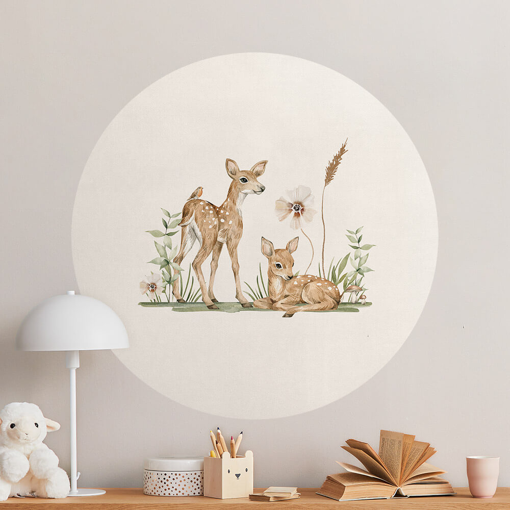Een superschattige behangcirkel voor een meisjeskamer met twee hertjes.