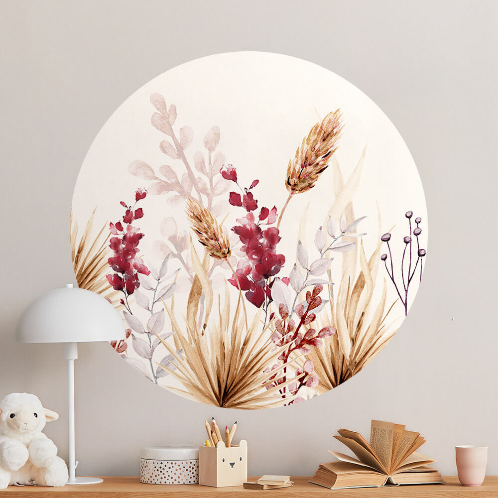 Behangcirkel botanisch voor meisjeskamer met droogbloemen