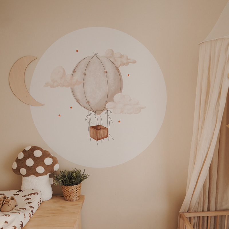 Beige behangcirkel met luchtballon en sterren