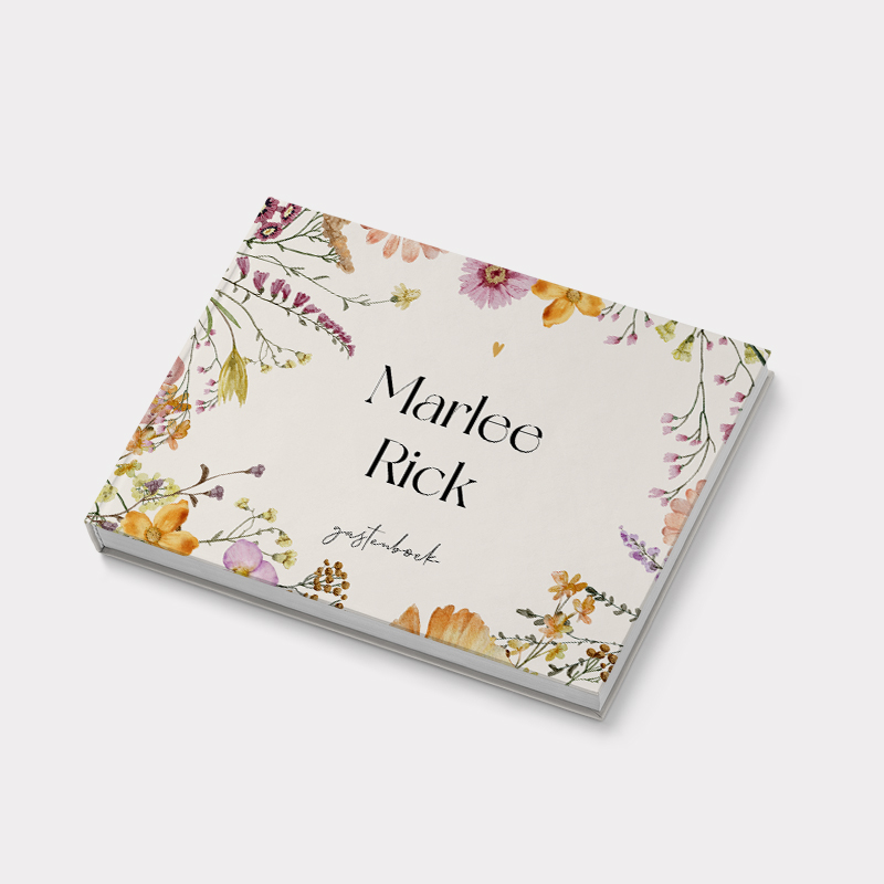 Een prachtig kleurrijk gastenboek voor jullie bruiloft. De kaft heeft een beige achtergrond met allerlei vrolijke aquarel veldbloemen.| Totaalprijs: 0 |