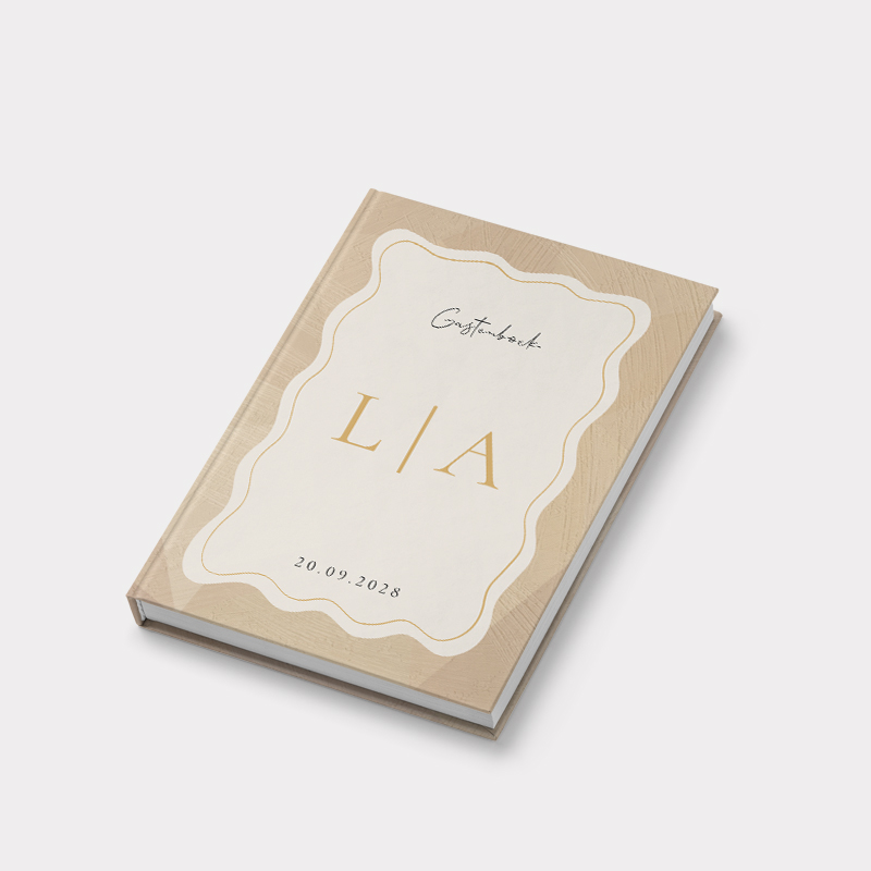 Gastenboek met geometrisch patroon in bruintinten. Het formaat van het boek is staand en de kaft is helemaal naar eigen wens te personaliseren. Dit gastenboek past perfect bij de geometrische trouwkaarten set.| Totaalprijs: 0 |