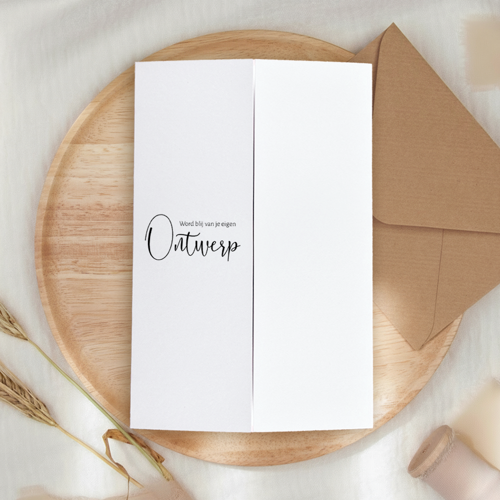 Staande blanco theatervouw kaart die je kunt gebruiken om een uniek en eigen kaartje te ontwerpen. Bekijk alle opties in onze handige editor en ga aan de slag!