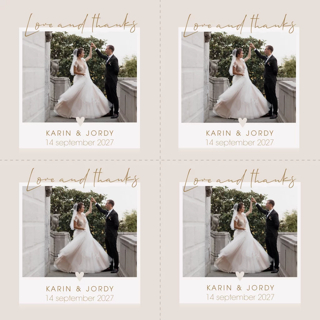 Bedank met deze minikaartjes je gasten voor de geweldige dag. Voeg een foto van jullie als pasgetrouwd stel toe en maak de kaartjes hiermee helemaal af!