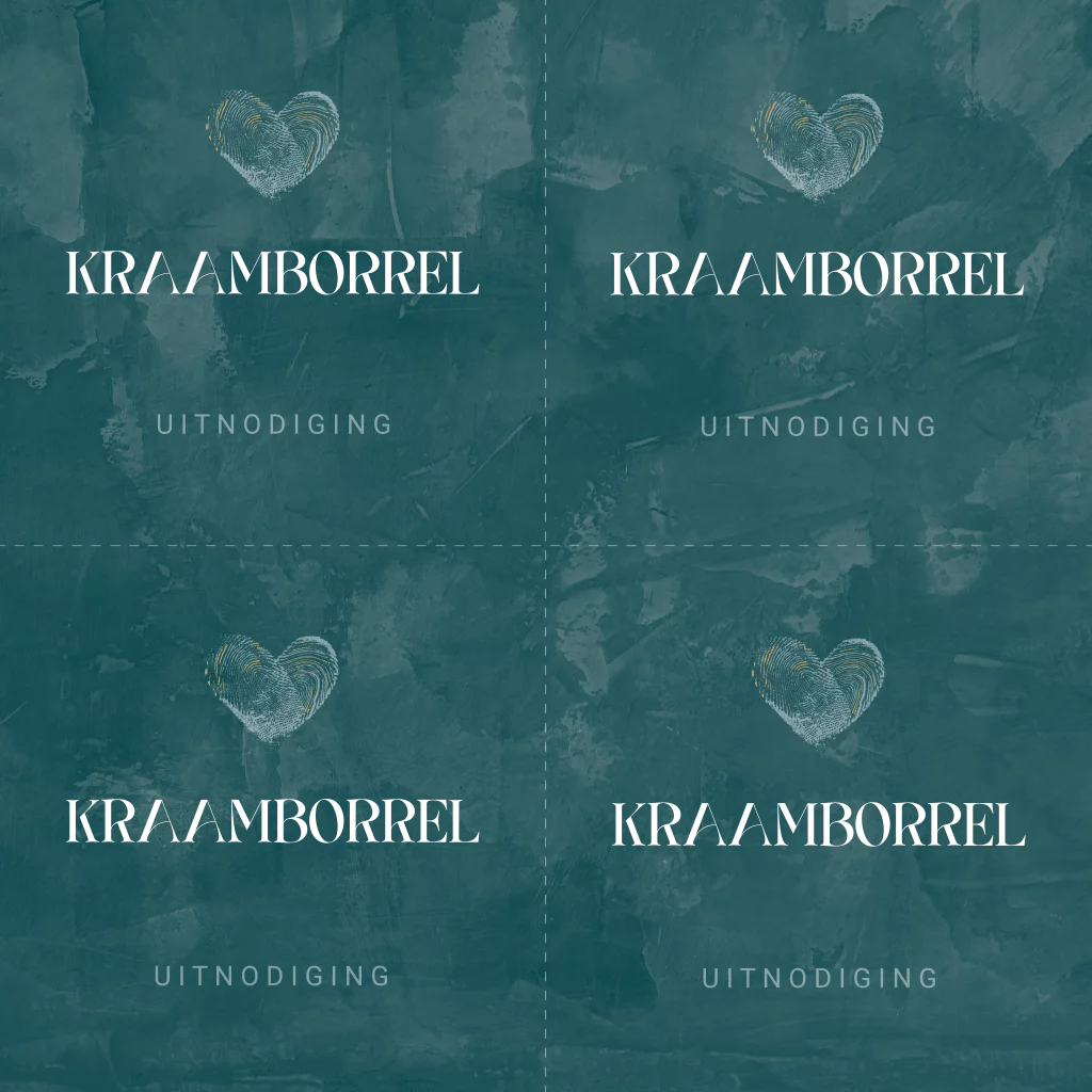 Met deze DIY minikaartjes kun je jullie kraamborrel voor jullie zoon op een leuke manier aankondigen. Deze kraamborrelkaartjes zijn geïnspireerd op het fingerprint geboortekaartje Maas van Anne Vedder. Op deze minikaartjes zie je een petrol betonlook achtergrond met twee vingerafdrukken in de vorm van een hartje. Het woord kraamborrel en een deel van de vingerafdrukken is in goud foliedruk vormgegeven. Dit geeft een extra luxe uitstraling aan de kraamborrelkaartjes. Voeg dit minikaartje voor een jongen apart toe bij het geboortekaartje en je hebt een hele leuke persoonlijke uitnodiging.