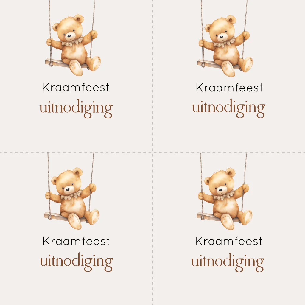 DIY kraamfeest uitnodiging minikaartjes met beertje op schommel