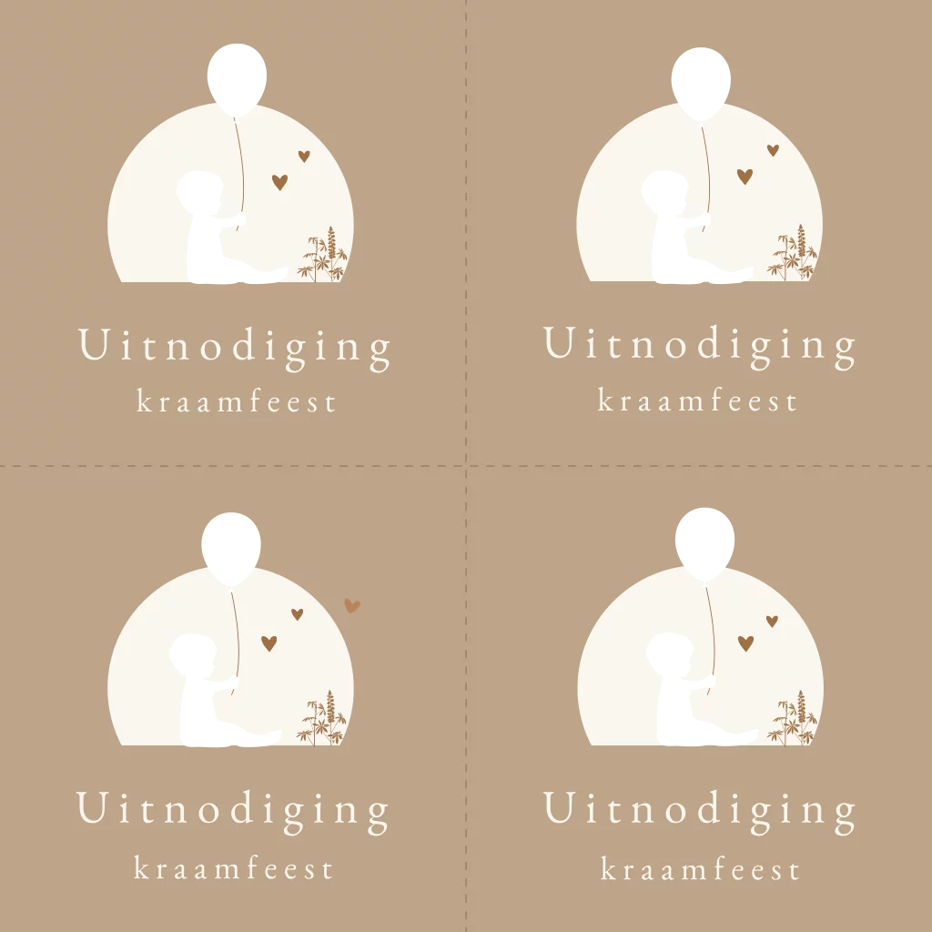 Deze minikaartjes zijn perfect om de kraamborrel voor jullie zoon aan te kondigen. Het is een speciale toevoeging aan jullie geboortekaartje. De foliedruk in de kleur goud geeft het minikaartje een luxe uitstraling. Je ziet een silhouet van een jongetje met zijn ballon, omringd door twee hartjes en een plant. De kraamborrel minikaartjes kun je zelf uitsnijden of uitknippen en zijn perfect om de geboorte van jullie zoon te vieren!