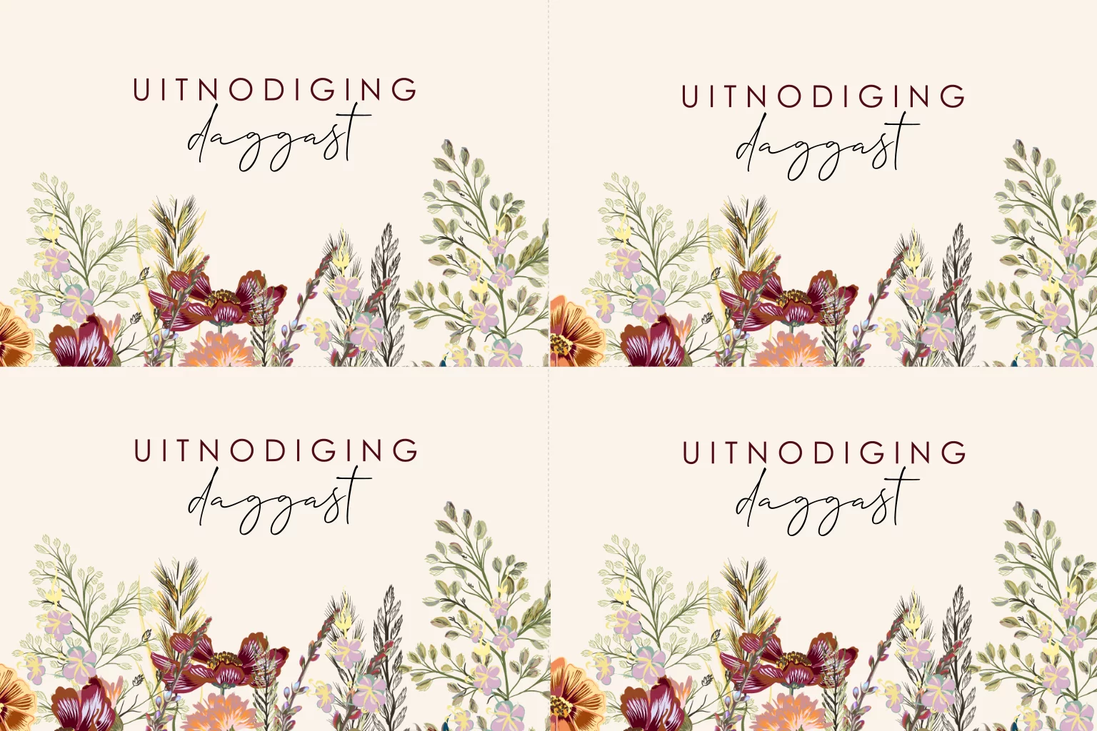 Heb je verschillende gasten op je bruiloft? Voeg dan een DIY minikaartje toe aan de trouwuitnodiging zodat het duidelijk is waar de gast voor is uitgenodigd. Zo hoef je niet allemaal verschillende trouwkaarten te bestellen. Deze DIY minikaartjes met kleurrijke bloemen is ontworpen voor dag gasten maar kun je in de editor eenvoudig aanpassen.