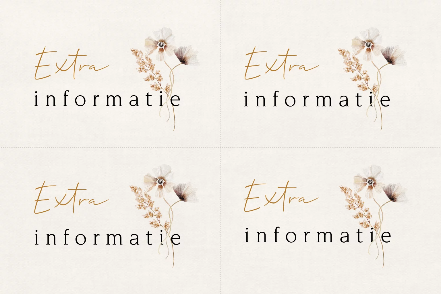 Minikaartjes trouwen extra informatie met aquarel bloem