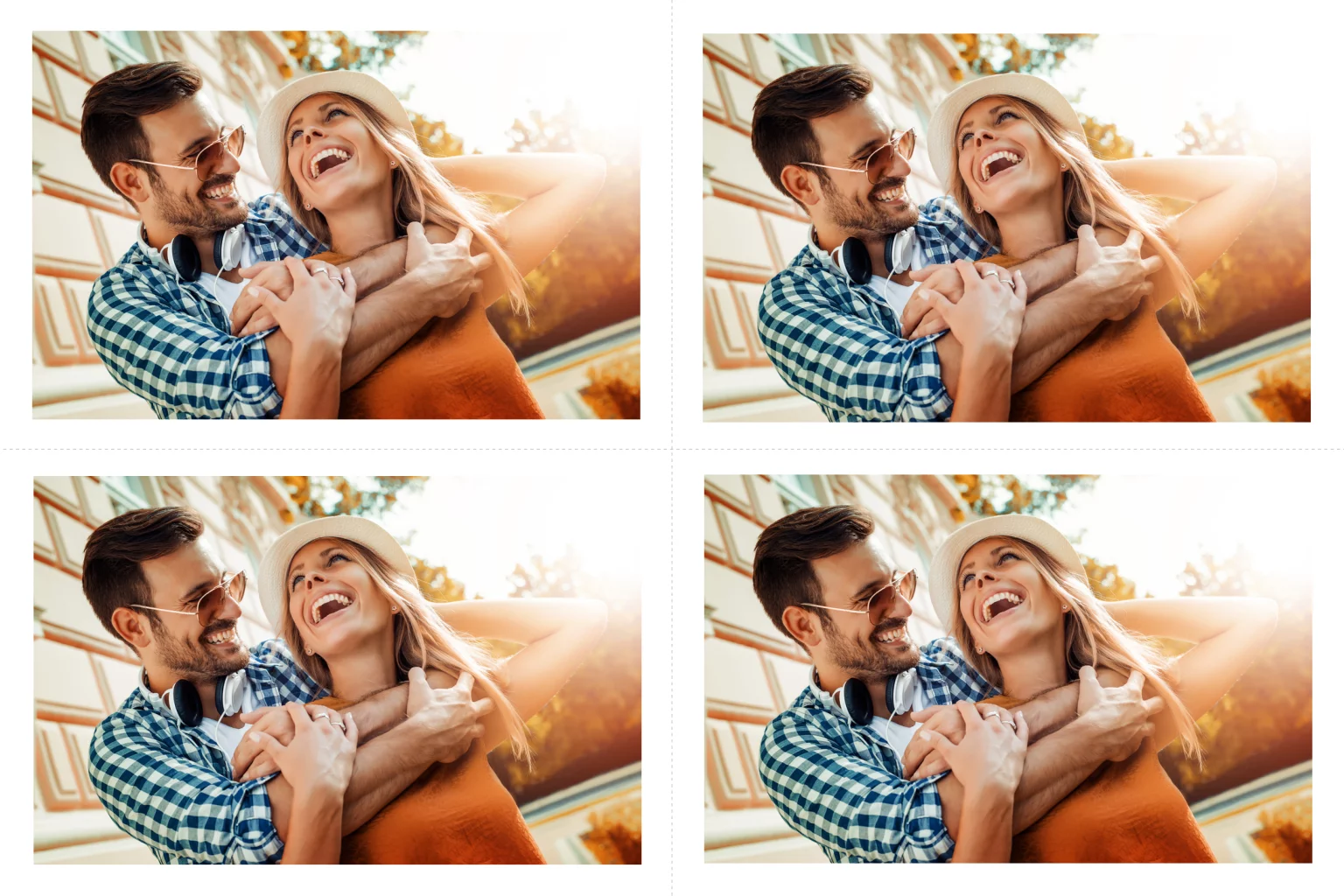 Door middel van de stippellijn kun je de kaartjes gemakkelijk opmaken. De stippellijn op de voorkant en achterkant worden niet gedrukt. De snijtekens op de achterkant worden wel gedrukt, zodat je de kaartjes goed kunt snijden.