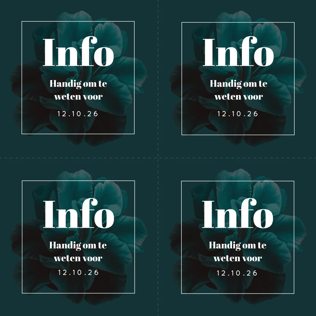 Let op: de achterkant van het kaartje wordt gespiegeld op de voorkant gedrukt; de linkerzijde van de achterkant wordt op de rechterzijde van de voorkant gedrukt. Wanneer je het kaartje gaat bewerken, staat dit ook middels nummers aangegeven.
