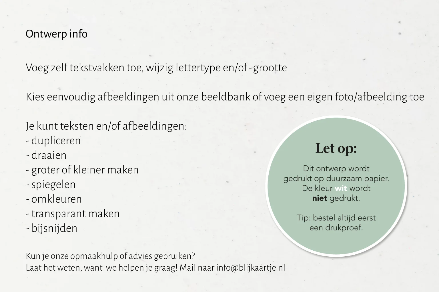 | 15 × 10 cm | vanaf € 1,80 p/st |
