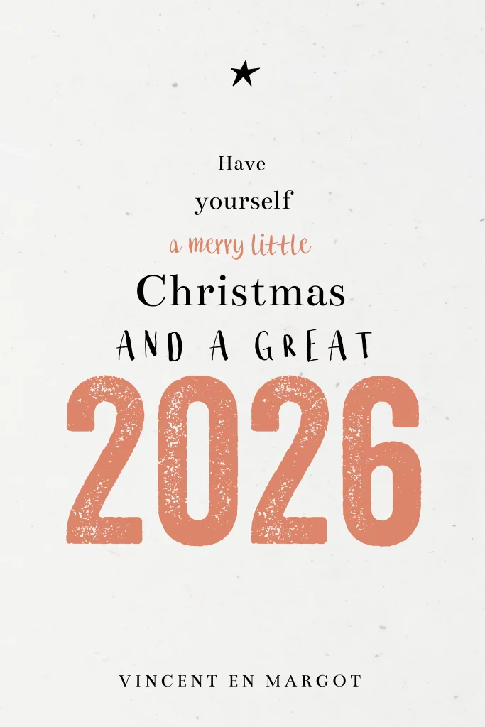Duurzame kerstkaart met de tekst "Have yourself a merry little Christmas and a great 2026". De tekst staat vermeld in de vorm van een kerstboom. Voeg op de achterzijde je eigen persoonlijke kerstgroet toe.