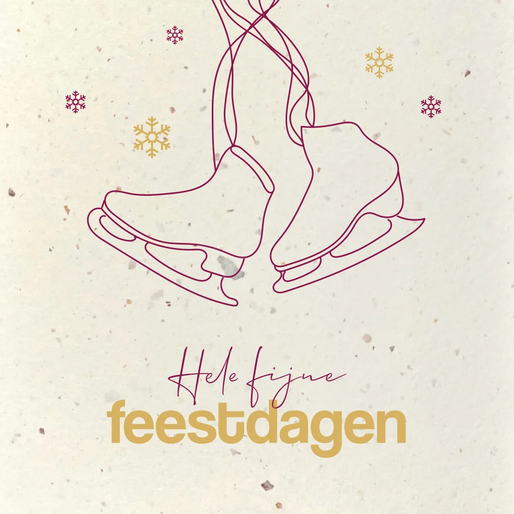 Wanneer je aan kerst denkt, denk je vast ook aan schaatsen op het ijs. Deze duurzame kerstkaart brengt iedereen in de schaats en feestdagen stemming! De ijskristallen op de achtergrond passen er helemaal bij. Teksten, lettertypes en kleuren zijn naar je eigen smaak aan te passen in de editor.