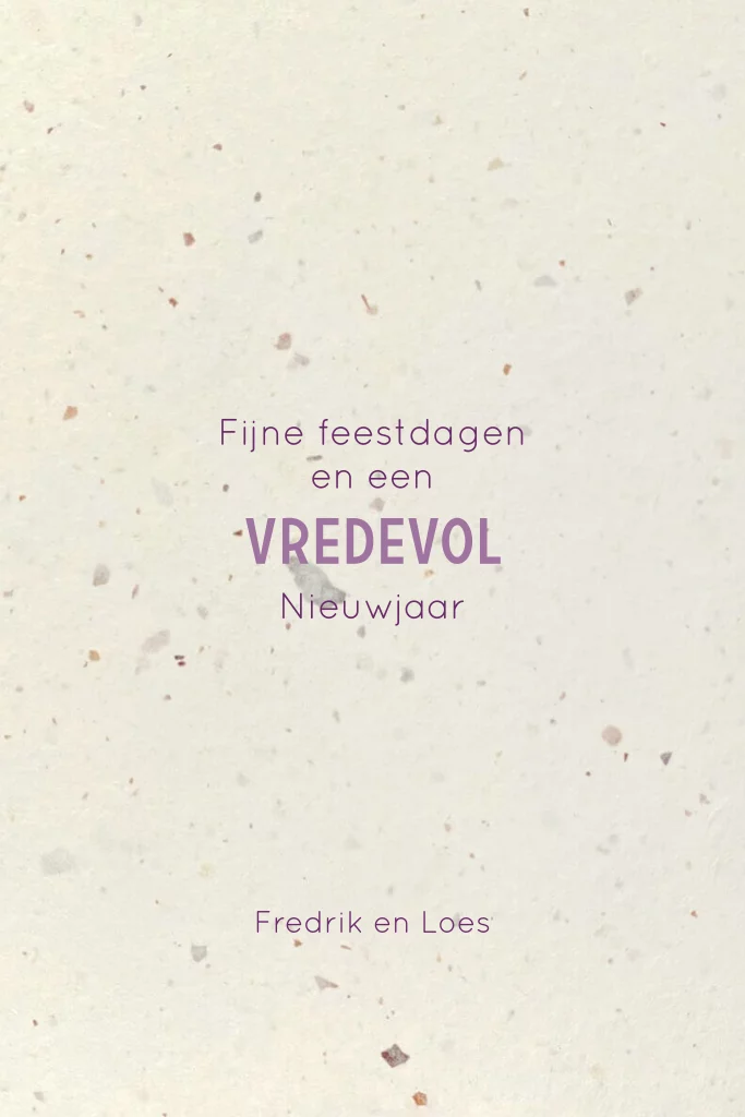 Deze kerstkaart is een 100% Nederlands product en wordt gedrukt op gerecycled papier welke voor 20% uit tulpenbollen bestaat, aangevuld met houtvrije cellulose. De papiersoort is beige en heeft duidelijk zichtbare vlokken en vezels. Aangezien het een natuurlijk product is kan er een uitstraling- en kleurverschil zitten tussen verschillende oplages van drukwerk. Wij adviseren je om, voordat je een grotere oplage bestelt, eerst een drukproef van het ontwerp te bestellen zodat je het duurzame papier gecombineerd met het drukwerk goed kunt beoordelen. LET OP: kies je voor een andere duurzaam papiersoort dan heeft dat gevolgen voor de (achtergrond)kleuren van je ontwerp.