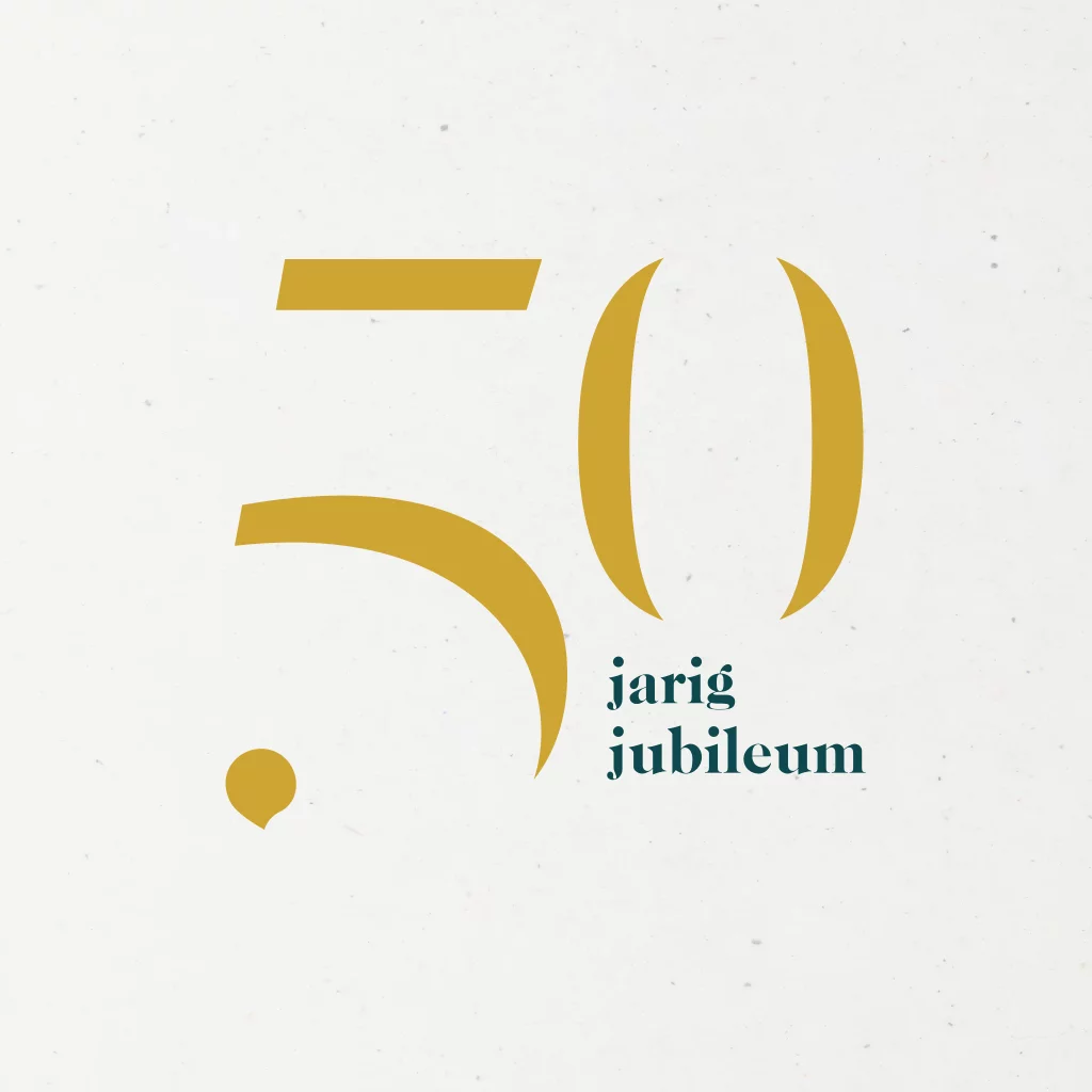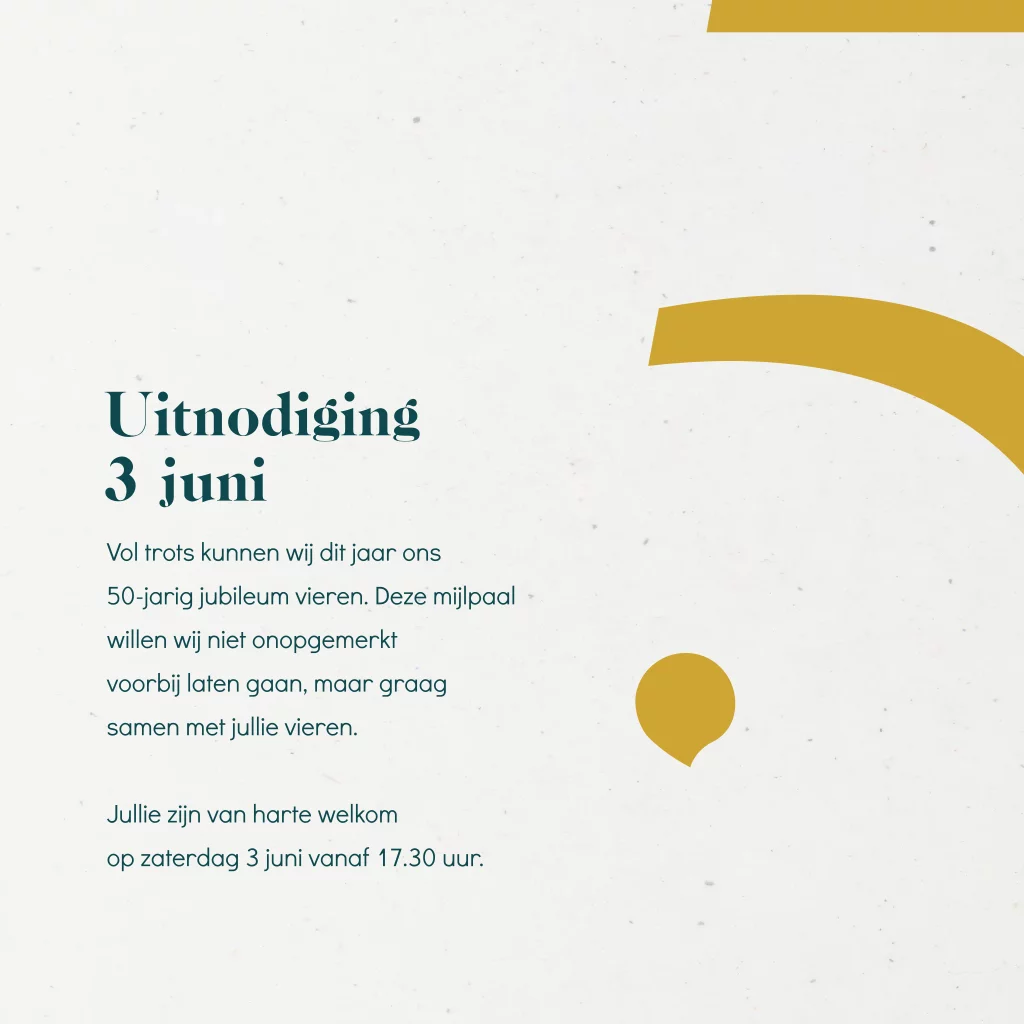 Zakelijke uitnodiging voor een 50-jarig jubileum op duurzaam papier. Deze duurzame uitnodiging heeft een basic design. Pas de teksten en lettertypes naar wens aan in de editor.