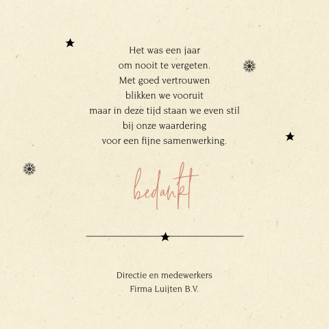 Duurzame zakelijke kerstkaarten worden gedrukt op 3 verschillende soorten gerecycled papier.. Om het inktgebruik te beperken wordt vooral gebruik gemaakt van minimalistische designs.... Liever een zakelijke kerstkaart uit één van onze andere collecties laten drukken op duurzaam papier? Geen probleem, we helpen je graag met het verduurzamen van je ontwerp en drukwerk.