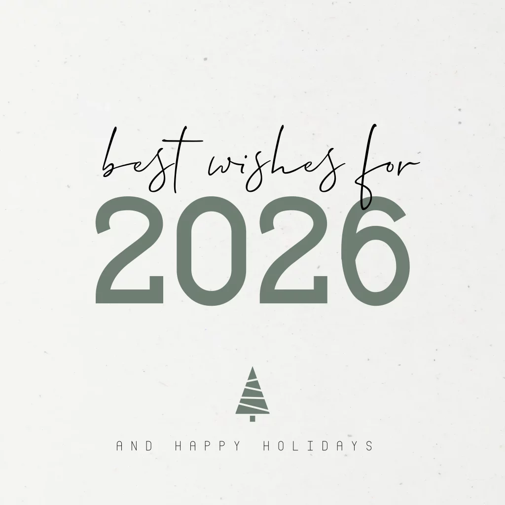Deze duurzame moderne zakelijke kerstkaart is voor elke branche of sector te gebruiken. De tekst op deze kaart " Best wishes for twenty twenty six"