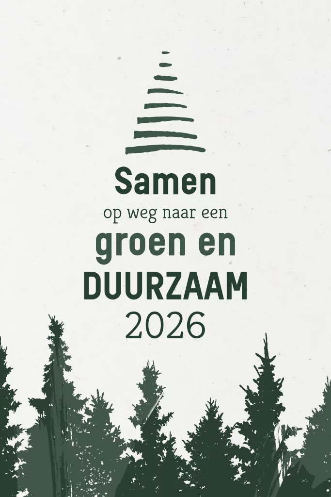 Duurzaam zakelijke kerstkaart met kerstbomen en jaartal 2026. Deze zakelijke kaart is voor bedrijven in de groen en natuur branche maar kan natuurlijk gebruikt worden voor alle bedrijven en instellingen.