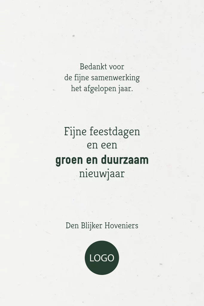 Deze zakelijke kerstkaart wordt gedrukt op gerecycled papier met zichtbare vezels. Het duurzame papier heeft een grijze ondertoon. Het papier is echter niet ruw en heeft ook geen voelbare structuur.