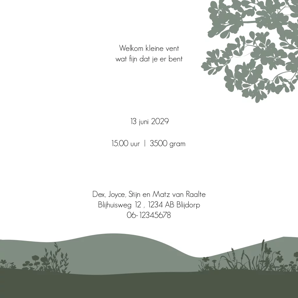 Silhouet geboortekaartje met broertje in karretje voor derde kindje