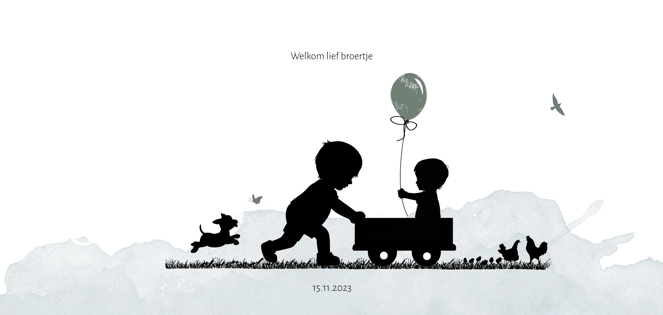 Silhouet geboortekaartje goudfolie voor 2e kindje