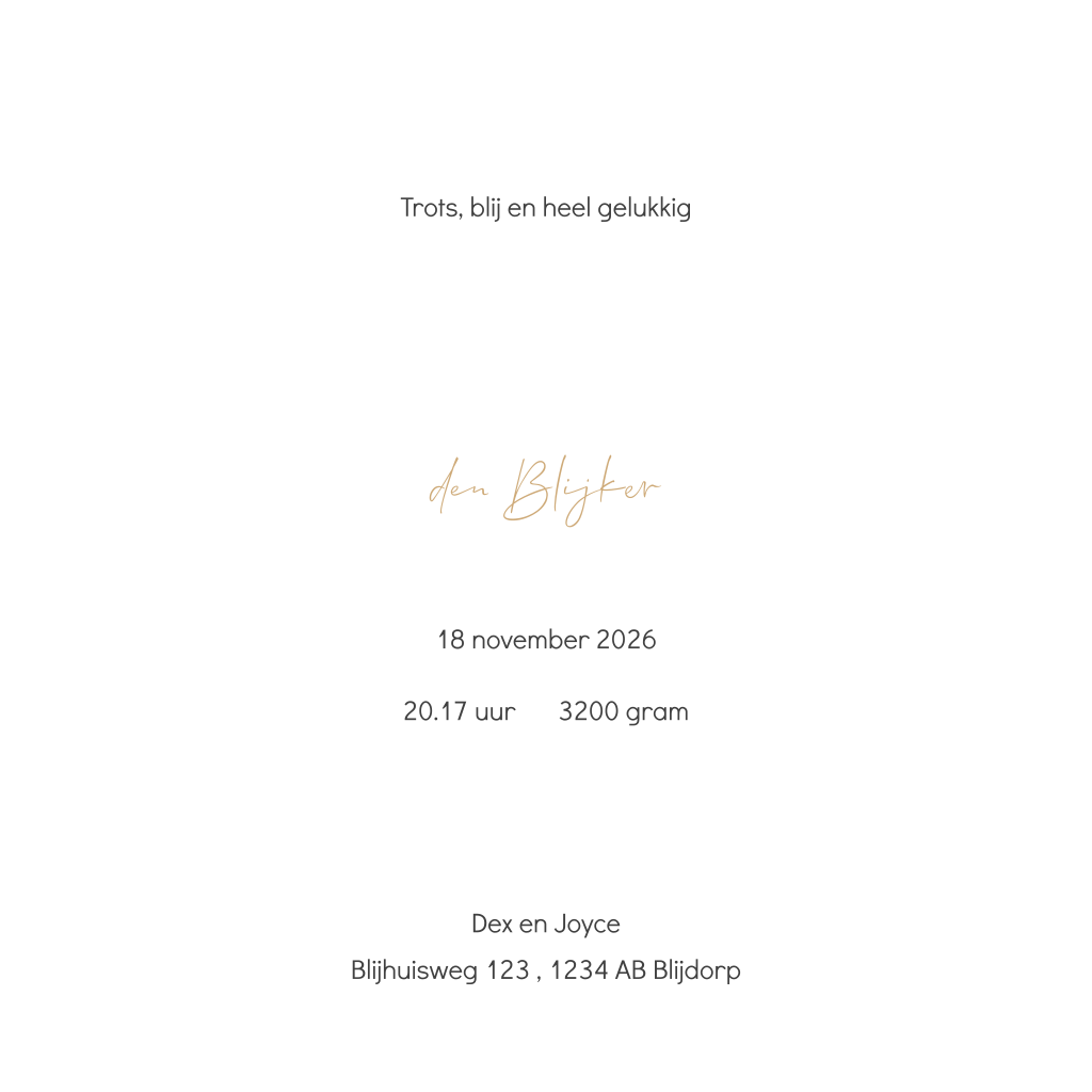 Neutraal geboortekaartje voor een jongen met gansje en goudfolie