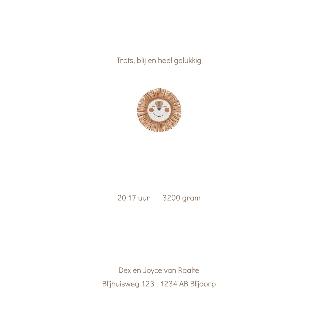 Leeuw geboortekaartje voor een jongen met goudfolie