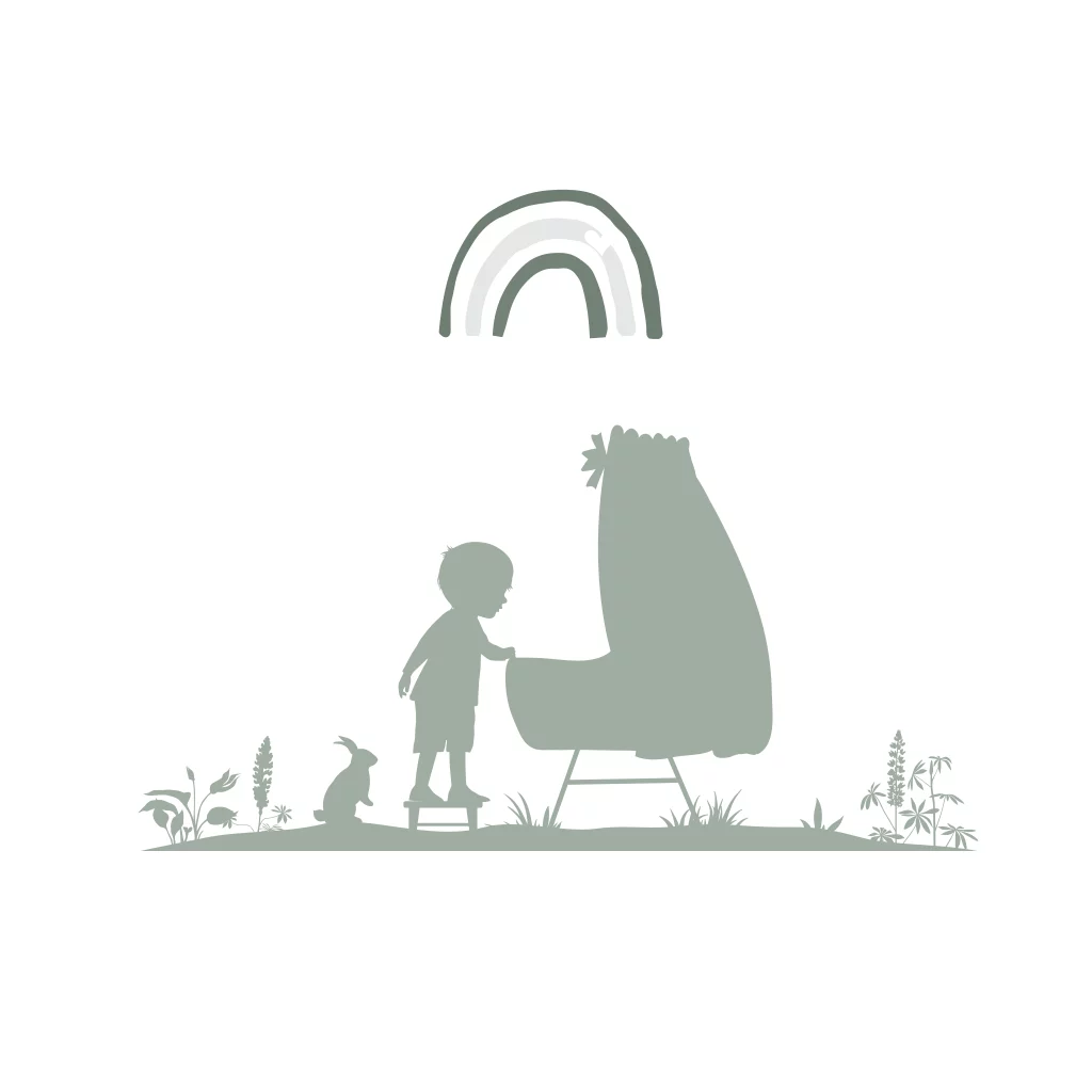 Broertje in wieg en regenboogje silhouet kaartje met goudfolie