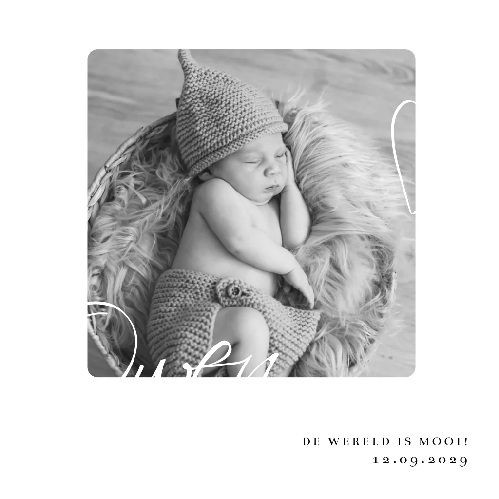 Exclusief geboortekaartje voor een jongen. Op dit kaartje Owen plaats je een eigen persoonlijke foto. De babynaam staat geschreven in een sierlijk lettertype. De gouden elementen op deze kaart, waaronder de babynaam, het hart en de symbolen op de binnenzijde worden gedrukt in echt goudfolie. Ook mogelijk met zilverfolie of roséfolie. Dit is aan te passen in de editor.