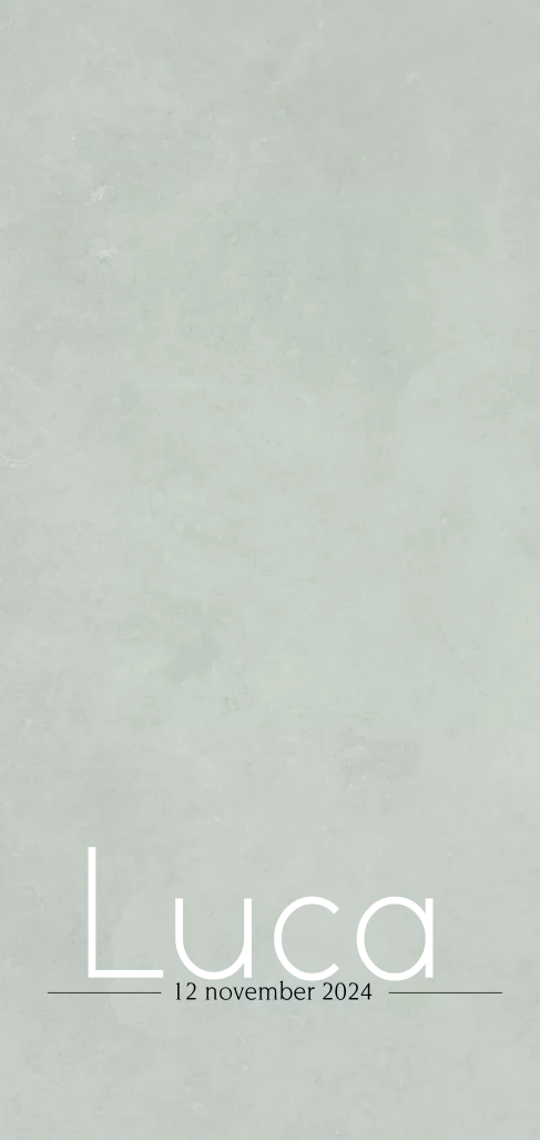 Basic jongens geboortekaartje met een trendy velvet look achtergrond in een zachte kleur grijsgroen. De babynaam wordt gedrukt in echt goudfolie. De folie heeft een mooie glans en hiermee springt de naam er op dit kaartje Luca helemaal uit! Extra speciaal zijn de ronde hoeken. Kleuren en lettertypes zijn aan te passen in de editor.