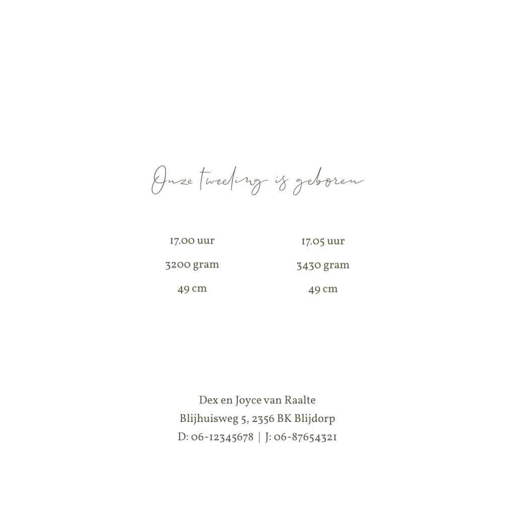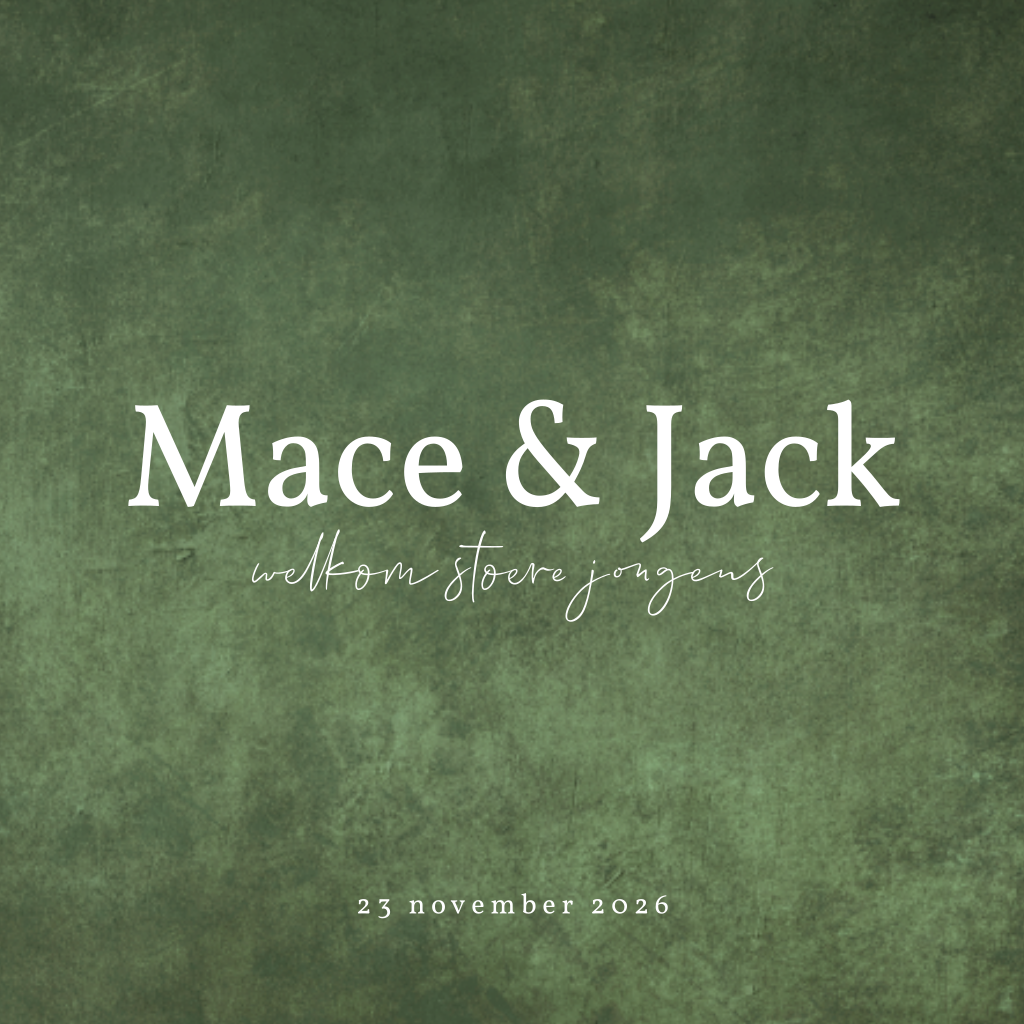 "Welkom stoere jongens". Dat staat op dit schitterende goudfolie geboortekaartje voor een tweeling. De trendy velvet groene achtergrond geeft het helemaal een stoere look. Op het kaartje elementen in luxe foliedruk. De kleur van de foliebedrukking kun je in de ontwerpmodule aanpassen, net als de teksten en lettertypes. Hulp nodig? Laat het ons gerust weten.