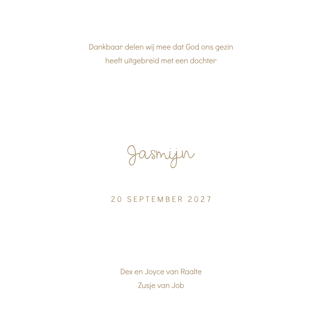 Christelijk geboortekaartje romantisch klassiek met bloem en goudfolie