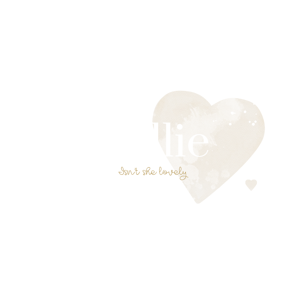 Luxe foliedruk geboortekaartje voor een dochter. Op dit meisjes kaartje Millie worden de babynaam, geboortedatum en kleine hartjes op de voorzijde gedrukt in goudfolie. Dit geeft het kaartje een exclusieve uitstraling. Achter de naam van jullie meisje een aquarel hart. Het kaartje is overwegend wit en heeft een rustige en lieve uitstraling. Ook mooi met roséfolie, zilverfolie of koperfolie. Dit is gemakkelijk aan te passen in de editor.