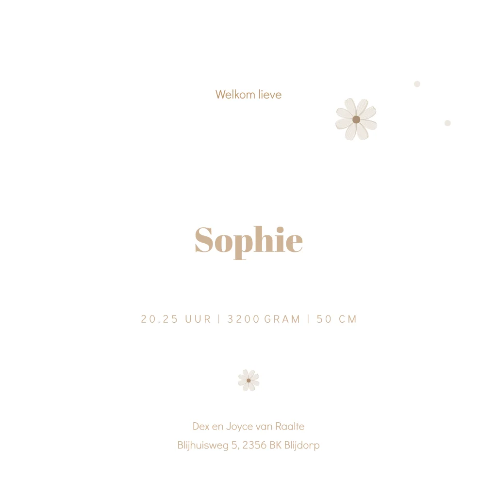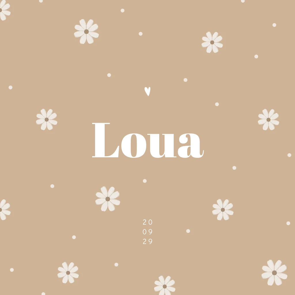 Geef je dochter een prachtig geboortekaartje met een bloemenpatroon van madeliefjes. Dit kaartje Loua is trendy, vrolijk en lief tegelijk. Het perfecte geboortekaartje voor een meisje in de lente of zomer. De goudfolie geeft dit meisjeskaartje een luxe uitstraling en net dat beetjes extra's. Maak met de bijpassende sluitzegel het kaartje met envelop helemaal compleet.
