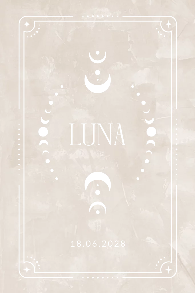 Geboortekaartje voor een meisje met een boho maan kader
