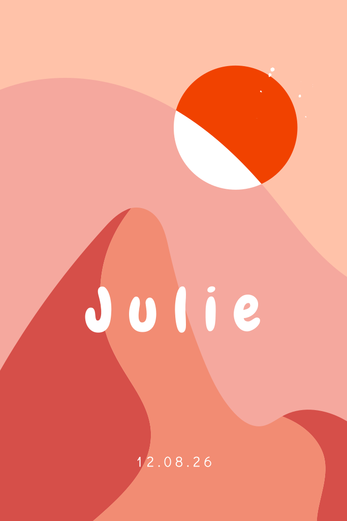 Abstract babykaartje voor een dochter met vrolijke kleurrijke bergen en een zon. De gouden elementen, waaronder de babynaam en de geboortedatum, worden gedrukt in echt goudfolie. Folie heeft een mooie glans en geeft de kaart een extra luxe uitstraling. Teksten en kleuren zijn gemakkelijk aan te passen in onze editor. Hulp nodig? Wij helpen je graag verder.
