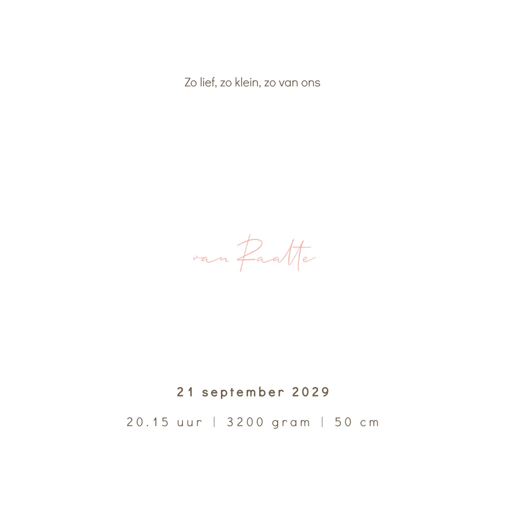 Prachtig luxe geboortekaartje voor een meisje geïnspireerd op het geboortekaartje van Esther Vedder. Dit geboortekaartje Paris heeft op de achtergrond de leuke print 'pink jungle'. Dubbelzijdig goudfolie maakt dit kaartje helemaal af en extra speciaal! De kleur van de foliedruk pas je heel makkelijk zelf aan in onze editor.| Totaalprijs: 0 |