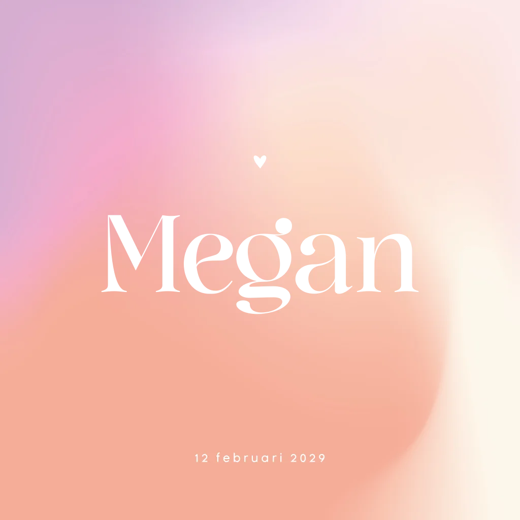Een hip en kleurrijk geboortekaartje voor een meisje. Dit geboortekaartje Megan heeft prachtige roze en paarse pastelkleuren. Dit kaartje is uniek door de foliedruk en mooie kleuren. Maak het kaartje compleet met een bijpassende envelop en sluitzegel.