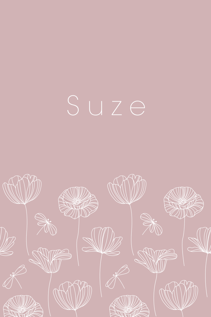 Exclusief geboortekaartje voor een dochter. Op dit meisjeskaartje met de naam Suze staan lijntekeningen van bloemen. Wat dit kaartje extra speciaal maakt, is dat de babynaam en enkele bloempjes worden gedrukt in écht roséfolie. De folie heeft een mooie glans en geeft dit kaartje een extra luxe uitstraling.