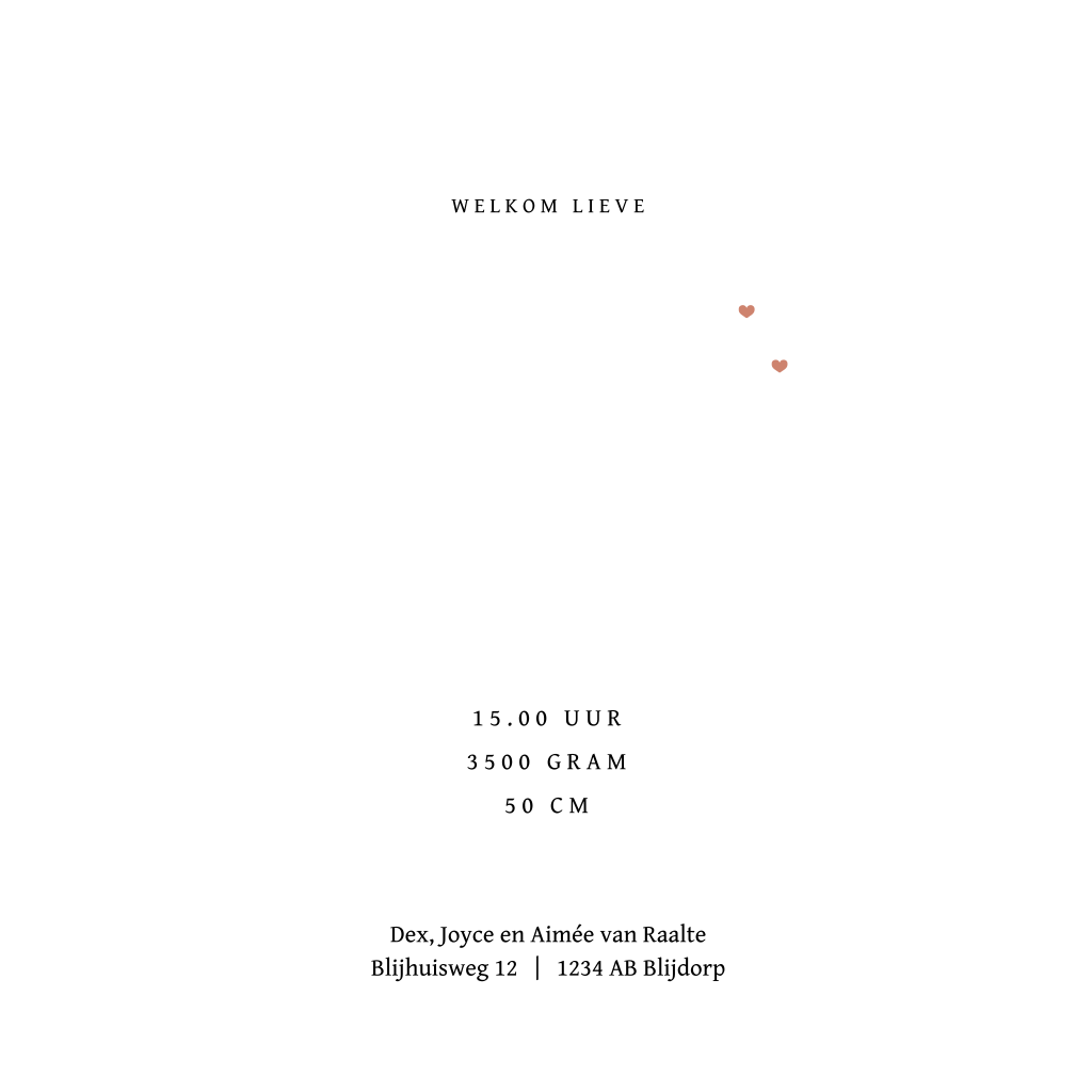 Lief silhouet geboortekaartje in trendy terra kleur met 2 zusjes die op het strand spelen met een zandkasteel. De babynaam staat in een speels lettertype en wordt gedrukt in écht roséfolie. Folie heeft een mooie glans en geeft het kaartje een extra luxe uitstraling. Pas dit kaartje Faye naar je eigen smaak aan in onze editor.