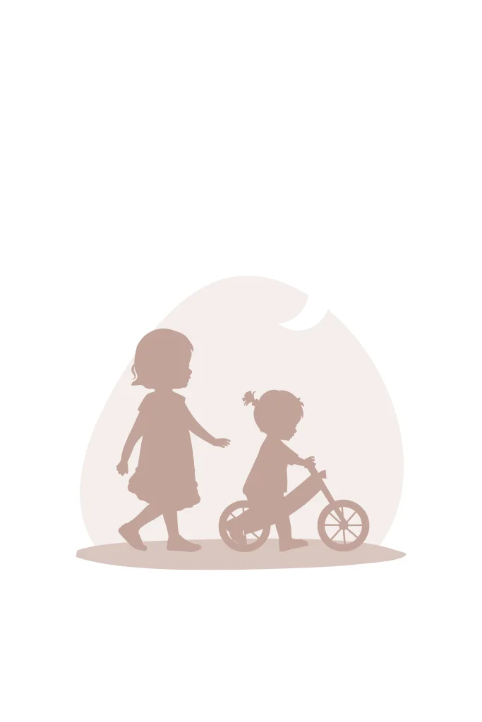 Stijlvol rustig geboortekaartje voor een tweede kindje, een zusje. Op dit geboortekaartje voor een meisje zie je een silhouetje van twee meisjes, een grote zus met klein zusje op een loopfietsje. De achtergrond heeft een organische vorm in zachte roze ton sur ton kleuren. De goudfolie en ronde hoeken geven dit kaartje Philou een luxe en unieke uitstraling. Pas dit meisjeskaartje naar je eigen smaak aan in de editor. Ook mogelijk met een ander silhouet of voor een andere gezinssamenstelling.