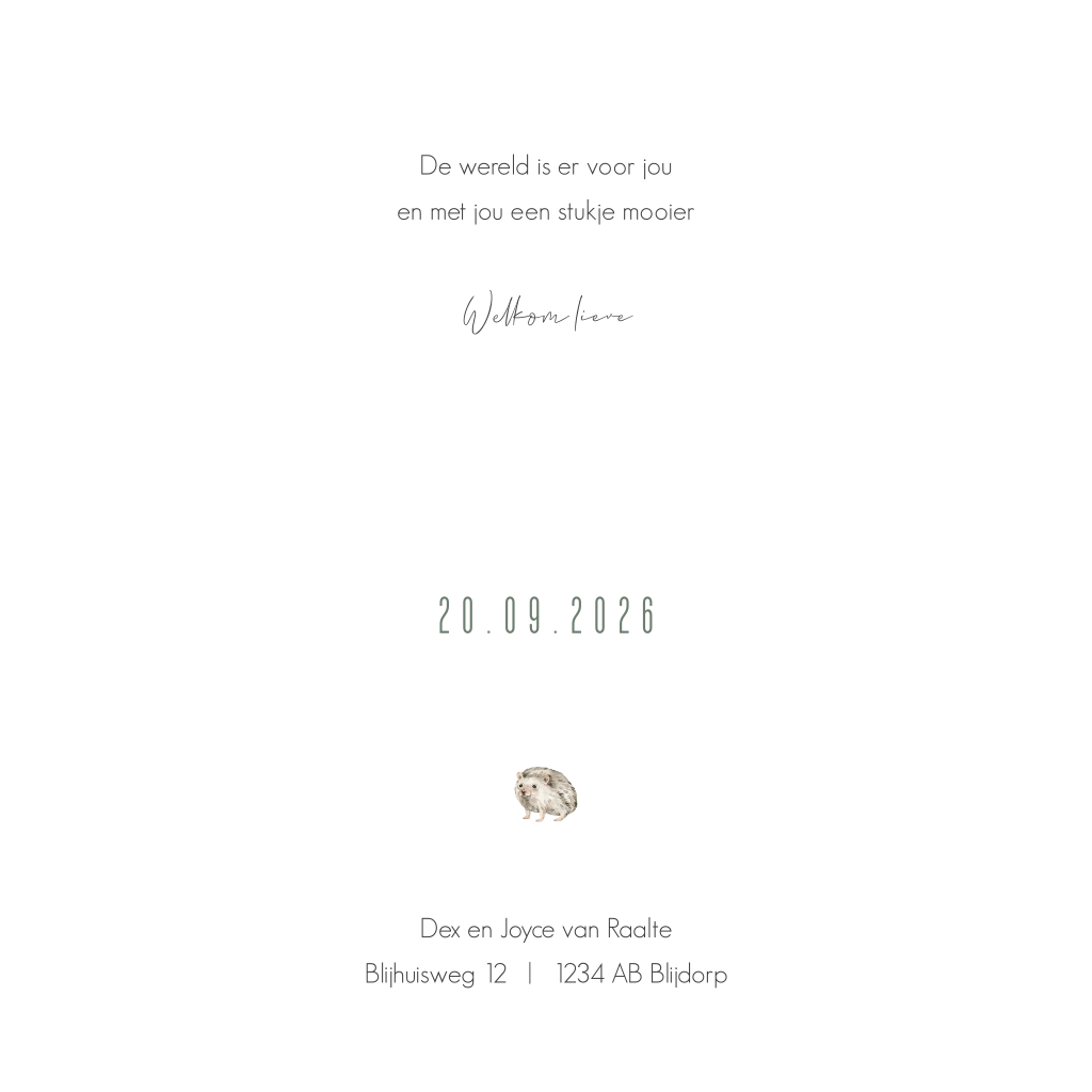 Luxe unisex geboortekaartje met bosdieren en foliedruk