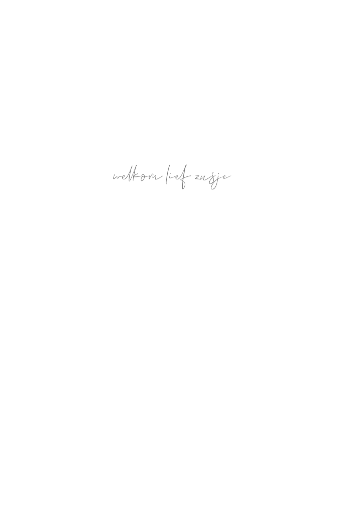 Hoera een zusje geboren! Vier de komst van jullie tweede kindje met dit prachtige geboortekaartje Abbey. Dit meisjeskaartje heeft een witte achtergrond met in holografisch foliedruk twee zusjes hand in hand. De babynaam staat in een strak lettertype. Pas dit kaartje naar je eigen smaak aan in de editor. Ook mogelijk met een ander silhouet of voor een andere gezinssamenstelling.